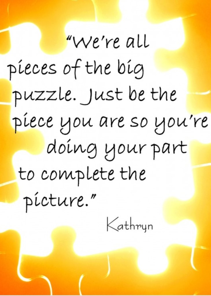 Visualise all the pieces in a puzzle. Each one separate does not really make sense but together it creates a complete picture. If even one of those puzzle pieces were to go missing ….the entire picture would be incomplete. Thats how important it is for the piece to be exactly who the puzzle piece was meant to be.